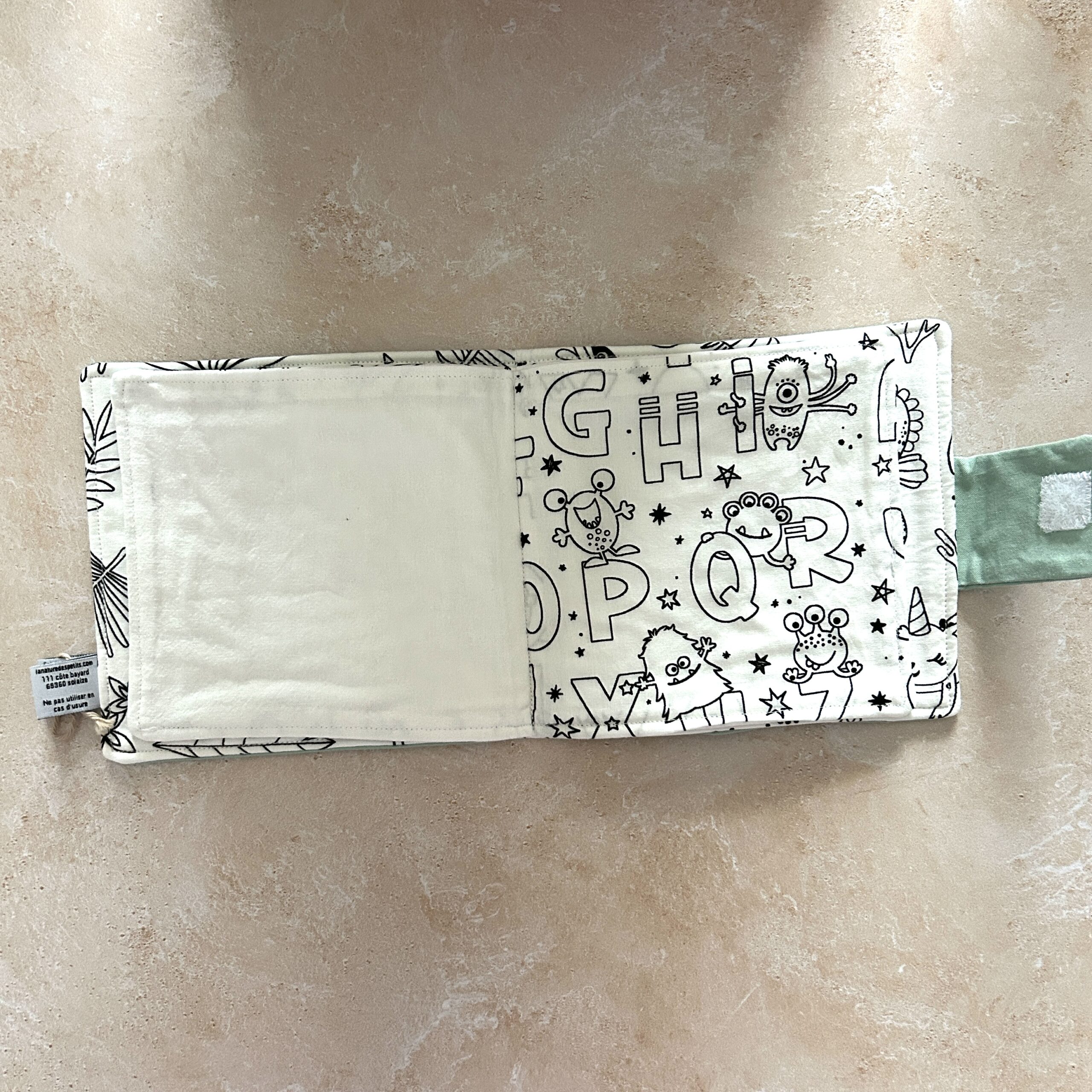 Le livre de coloriage lavable est un jeu que votre enfant va adorer et qui va l’occuper lors des sorties au restaurant, de rendez-vous, dans la voiture…Il suffit de colorier avec des feutres lavables, mettre le livre de coloriage en machine, le feutre disparaît et votre enfant peut recommencer à colorier ! Vous pouvez choisir la couleur de votre choix et personnaliser le livre avec un prénom pour un cadeau 100% personnalisé. Il est réalisé à la main à Lyon avec des tissus 100% oeko-tex.